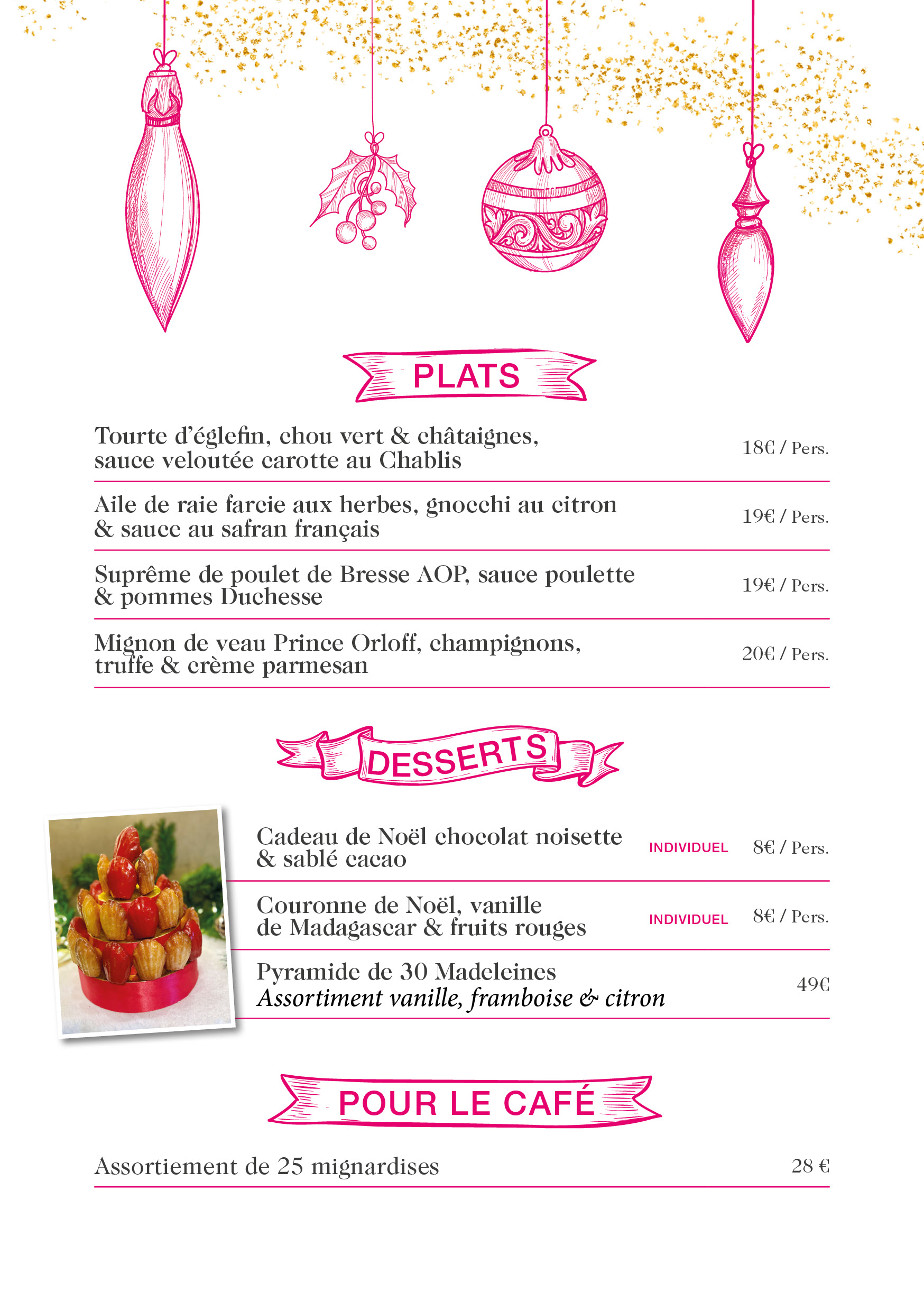 menu à emporter Les plats à emporter Les voiliers s’invitent chez vous ! Régalez vos convives et votre famille avec nos plats à emporter. Chaque année retrouvez nos cartes de plats à emporter pour les fêtes et notre menu spécial Saint-Valentin. Nous réalisons aussi des prestations sur mesure toute l’année. Contactez nous : 03 25 87 05 74 – accueil@lesvoiliers.fr La carte des fêtes Plats à emporter